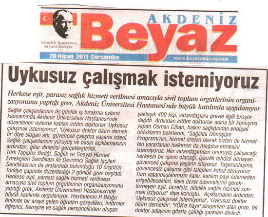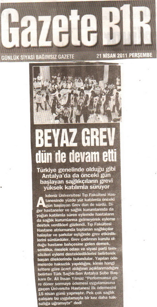 19-20 Nisan 2011 tarihlerinde gerçekleştirilen GREV etkinliğinin basına yansıyanlarının bir bölümü