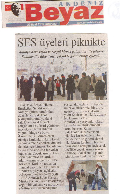 Saklıkent Kayak Merkezine  düzenlediğimiz pikniğin basına yansıyanlarının bir bölümü