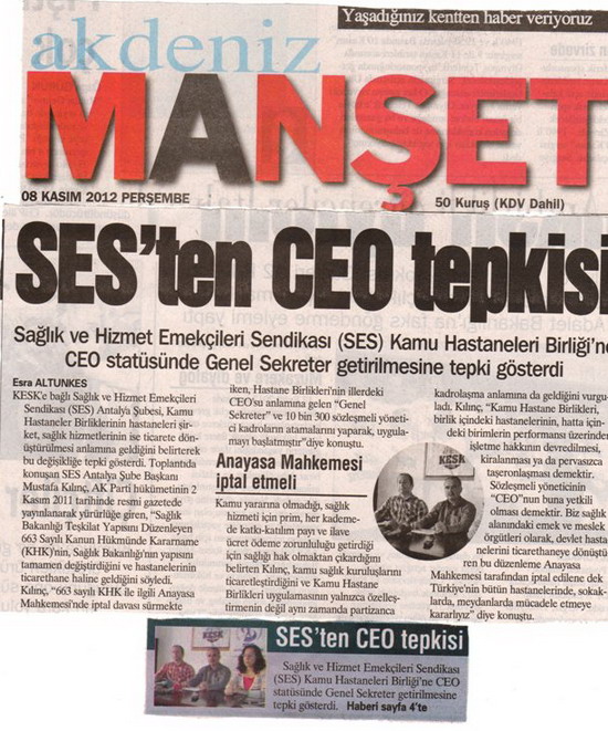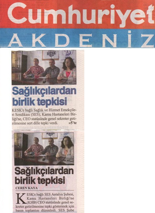 Kamu Hastane Birlikleri uygulaması ile ilgili yaptığımız açıklama basında yer aldı.