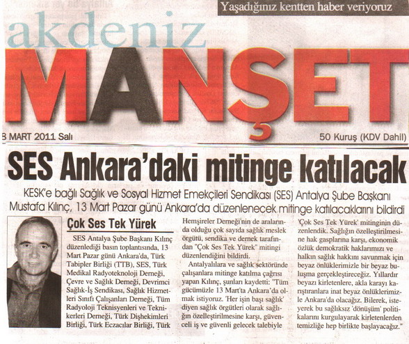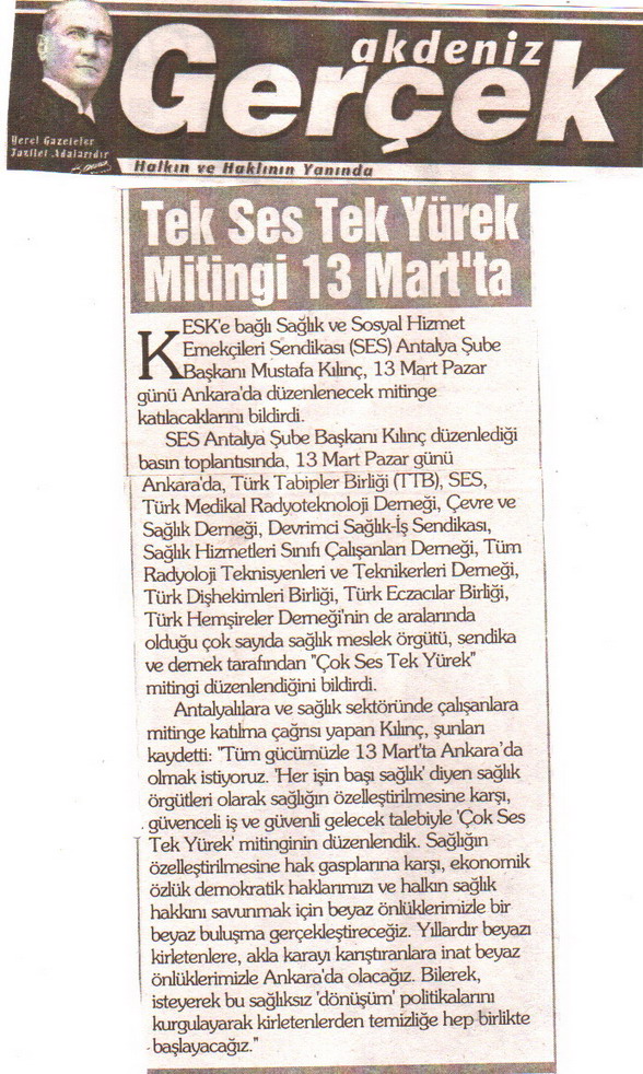 “13 Mart 2011’de Ankara'da düzenlenecek olan "Çok Ses Tek Yürek"  mitingine katılım için şubemizde yapılan açıklama
