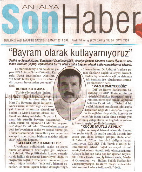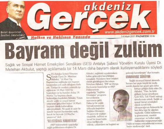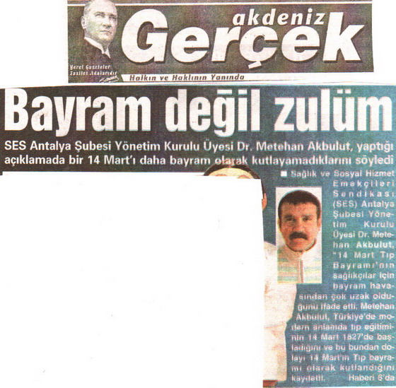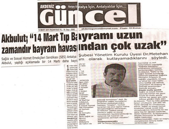 14 Mart Tıp Bayramı/Sağlık Haftası  nedeniyle yönetim kurulu üyemiz Dr.Metehan Akbulut tarafından yapılan açıklama