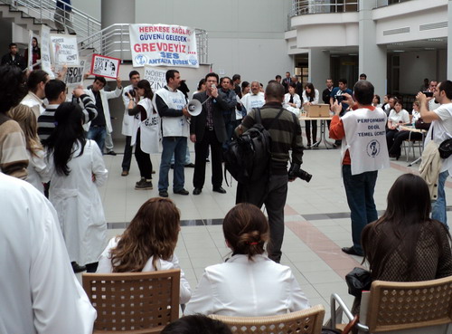 Akdeniz Üniversitesi Tıp Fakültesi Hastanesinde yüzde yüz katılımla 19 Nisanda başlayan Grev bugün de tüm coşkusuyla sürdü. Diğer hastaneler ve sağlık kurumlarında da yoğun katılımla süren eylemde hastaların da sağlık kurumlarına gelmeyerek eyleme destek verdikleri gözlendi.