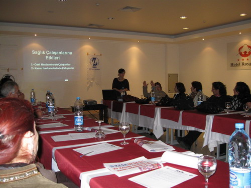 Demirtaş, “Kadına Yönelik Şiddet, Krizin ve Sağlıkta Dönüşümün Kadınlar Üzerine Etkisi, Hemşirelik Mesleğinin Çalışma Koşulları” ile ilgili konularda Ankara’dan Emine Uysal’ın eğitim vermek üzere geldiğini söyledi. Demirtaş, Akdeniz Üniversitesi Tıp Fakültesi Öğretim Üyesi Yrd.Doç.Dr. Mehtap Türkay’ın da “İş yeri Sağlığı ve Güvenliği” konusunda eğitim verdiğini belirterek, “Sağlıkta Dönüşüm Programı ve Geldiği Aşama” ile ilgili ise Akdeniz Üniversitesi Tıp Fakültesi Öğretim Üyesi Doç.Dr.Nursel Şahin’in temsilcilerine bir sunum yaptığını kaydetti.