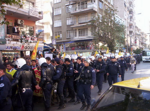 İş bırakarak, vizite alarak, Güllük-TRT kavşağında bulunan SES önünde saat 11.00’da toplanarak polisin müdahalesine ve engellemelerine rağmen yürüyüşe geçtik.