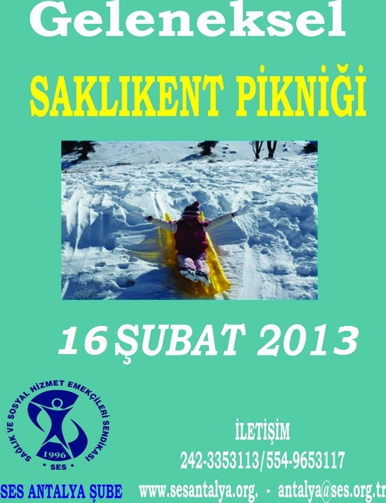 Şubemiz tarafından 16 Şubat 2013 Cumartesi günü Saklıkent Kayak Merkezinde piknik düzenlenecektir.