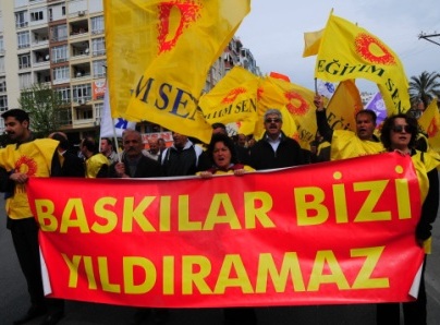 Antalya başta olmak üzere bir çok ilden Ankara’ya gidişimizin engellenmesini, üyelerimize yapılan polis saldırılarını kınıyoruz. AKP’nin son dönemde iyice belirginleşen büyük baskı düzenine karşı, onurlu ve kararlı duruşumuzdan bir an olsun vazgeçmeyeceğiz.   “Durmak yok yola devam” diyerek, emek ve halk düşmanı yasal düzenlemelerle, baskı ve şiddetle tüm toplumu tahakkümü altına almak isteyenlere karşı, meşru ve demokratik hakkımızı dün ve bugün nasıl kullandıysak bugünden sonra da aynı kararlılıkla kullanmaya devam ederek “Yılmak yok mücadeleye devam” diyeceğiz.
