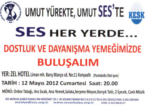 Sağlık ve Sosyal Hizmet Emekçileri Sendikası (SES) Antalya Şubesi Dostluk ve Dayanışma Yemeği düzenliyor.