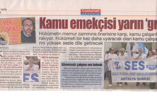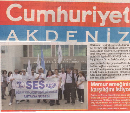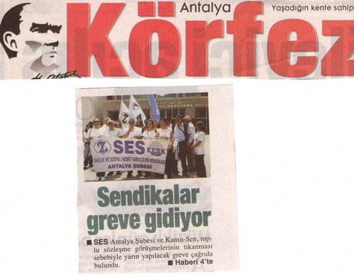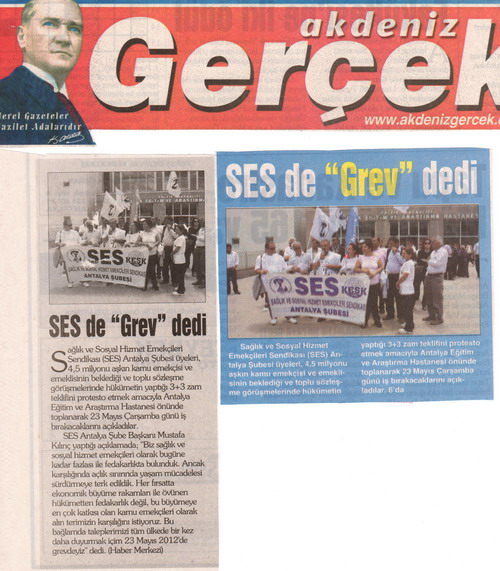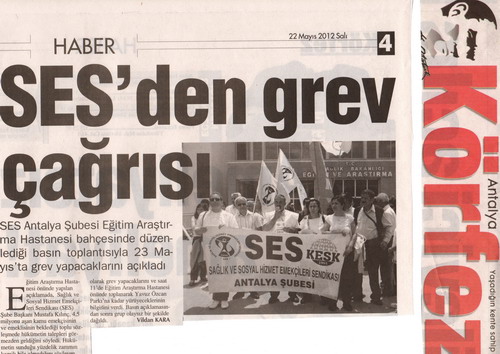 23 Mayıs 2012 günü gerçekleştirilecek GREV ile ilgili Antalya Eğitim ve Araştırma Hastanesi önünde yaptığımız
