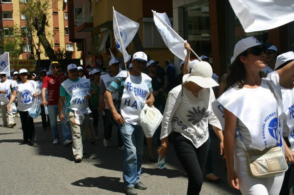 Güllük-Yüzüncü Yıl Kavşağı Aydın Kanza Parkında toplanan binlerce kişi, saat 14.00`ta Teomanpaşa Caddesi boyunca yürüyerek saatler sonra Atatürk Parkı`na geldiler.