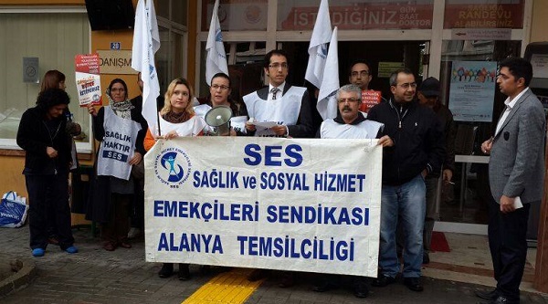 kurulunda görüşmeleri başlanacak olan 2015 yılı bütçesiyle ilgili   Sağlık ve Sosyal Hizmet Emekçileri Sendikası Alanya Temsilciliği üyeleri Alanya Devlet Hastanesi önünde basın açıklaması yaptı.