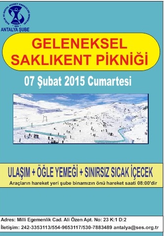 Şubemiz tarafından 7 Şubat 2015 Cumartesi günü Saklıkent Kayak Merkezinde piknik düzenlenecektir.