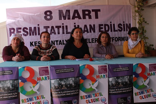 KESK Antalya Şubeler Platformu 8 Mart'ın resmi tatil ilan edilmesi talepli basın toplantısı düzenledi.