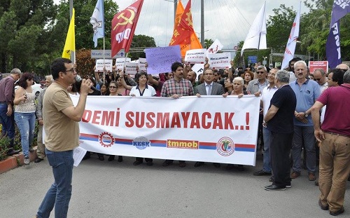 Akdeniz Üniversitesi Öğretim Elemanları Derneği, TTB Merkez Konseyi, TMMOB Antalya İl Koordinasyon Kurulu, KESK Antalya Şubeler Platformu ve DİSK Akdeniz Bölge Temsilciliği ‘nin çağrısıyla yapılan açıklamaya yüzlerce kişi katıldı.