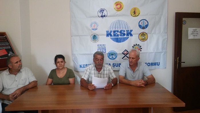 BES Antalya Şube binasında düzenlediği basın toplantısında konuşan KESK Antalya Şubeler Platformu Dönem Sözcüsü Mustafa Ayar, 15 temmuz darbe girişimi bahane edilerek KESK'e bağlı sendikaların üye ve yöneticilerine dönük soruşturma, açığa alma ve işten atma uygulamalarını eleştirdi.