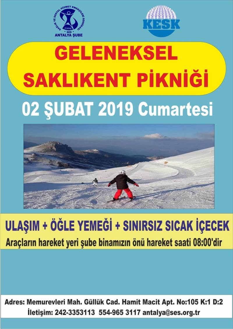 Şubemiz tarafından 2 Şubat 2019 Cumartesi günü Saklıkent Kayak Merkezinde piknik düzenlenecektir.