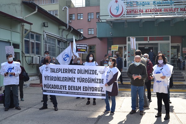 birinci yılı nedeniyle Antalya Atatürk Devlet Hastanesi önünde basın açıklaması gerçekleştirdi. Açıklama öncesi covid-19 pandemisinde hayatnı kaybeden sağlık emekçileri anısına 1 dakikalık saygı duruşunda bulunuldu.