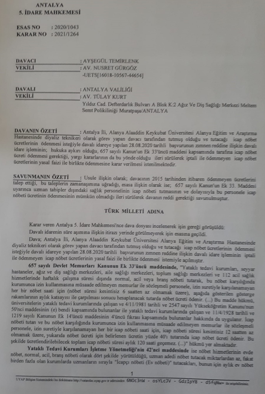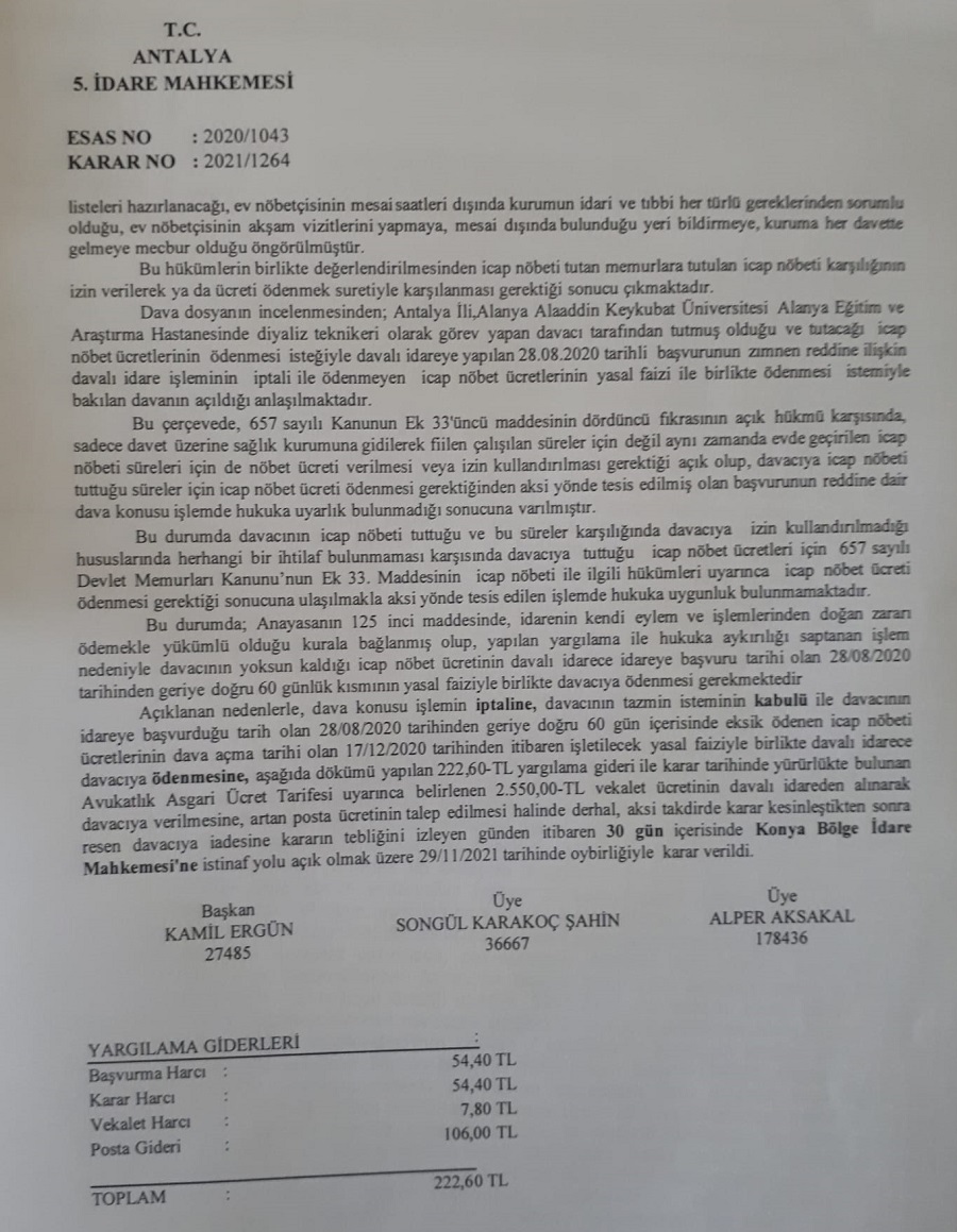 ALKU Eğitim ve Araştırma Hastanesinde ödenmeyen icap nöbetleri ile ilgili üyemiz adına açılan dava şubemiz lehine sonuçlanmıştır.
