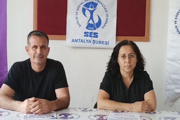 Sağlık ve Sosyal Hizmet Emekçileri Sendikası (SES) Antalya Şube Eş Başkanı Şükran İçöz şube binasında düzenlediği