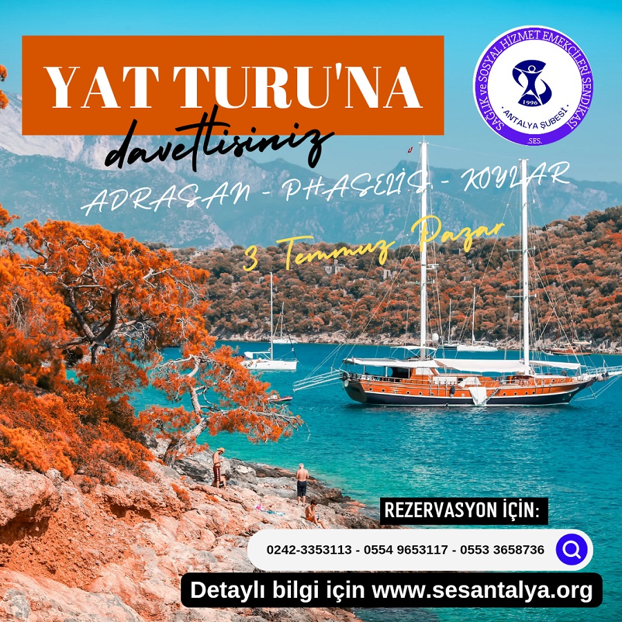 Geleneksel yat turumuz bu yıl 3 Temmuz 2022 pazar günü Adrasan - Phaselis- Koylar olarak yapılacaktır.