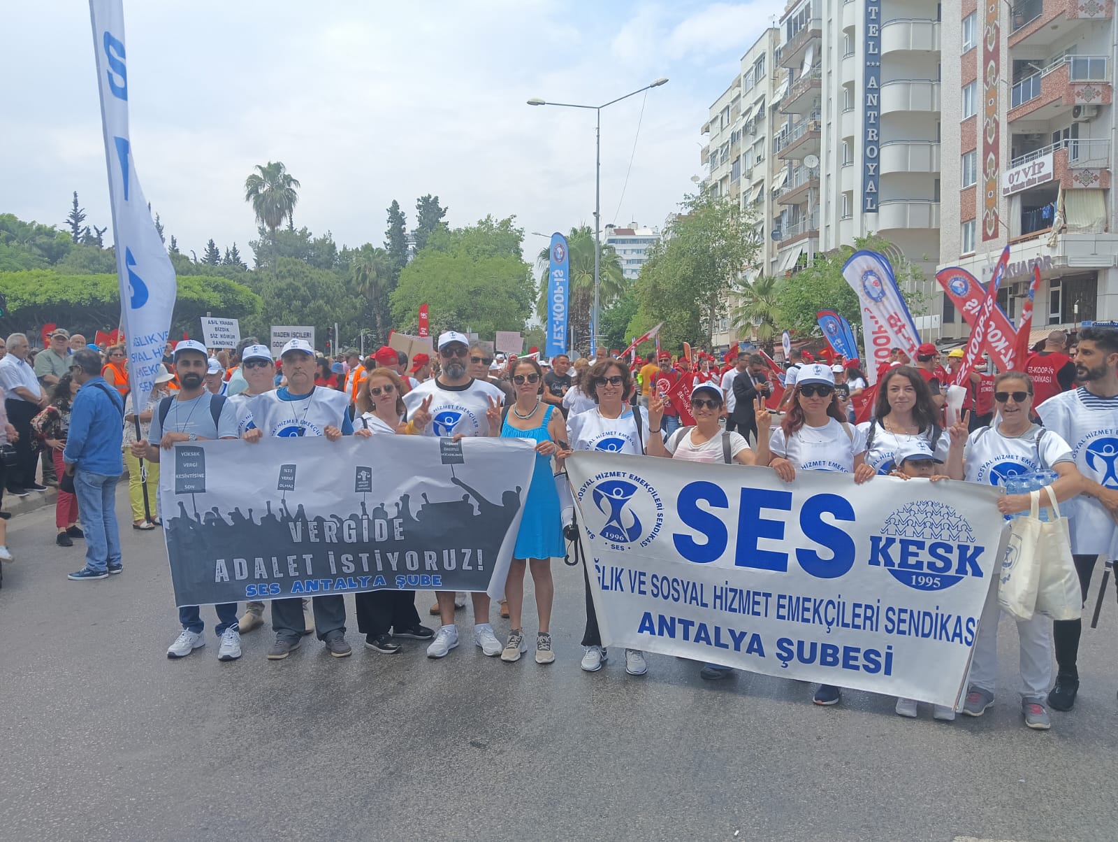 Emeğin, eşitliğin, özgürlüğün, demokrasinin, barışın, laikliğin hâkim olduğu bir gelecek ve ülke kurmaya yönelik mücadele sözümüzü yinelemek için Antalya, Alanya, Finike, Manavgat ve Kaş’ta 1 Mayıs alanlarındaydık.Tüm sağlık ve sosyal hizmet emekçilerini, sağlık ve sosyal hizmet kurumlarımızdan hizmet almak için gelen tüm halkımızla birlikte 1 Mayıs’ı coşkuyla kutladık. 10. Hafatasına giren Vergide Adalet İstiyoruz talebizimi bu çarşamba 1 Mayıs meydanlarına taşıdık.