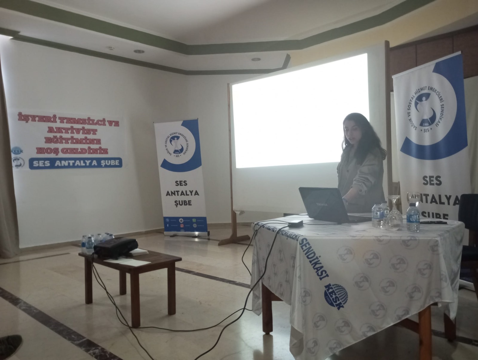 Tanışma bölümünün ardından Şube Eş Başkanımız Şükran İçöz kısa KESK ve SES tarihi sunumunu yaptı. Daha sonra Şube Eğitim, Örgütlenme, Basın Yayın ve Sosyal İşler Sekreterimiz Aslı Soydar Örgütlenme Stratejileri, İş Yeri Temsilcilerinin Önemi ve Kurumsal İşleyiş sunumunu yaptı. Verilen aranın ardından Şube Eş Başkanımız Kaan Taşer Sağlıkta Şiddet ve Şiddetle Başa Çıkma Yöntemleri sunumunu gerçekleştirdi. Yapılan sunumların ardından soru cevap bölümüyle eğitim sona erdi.