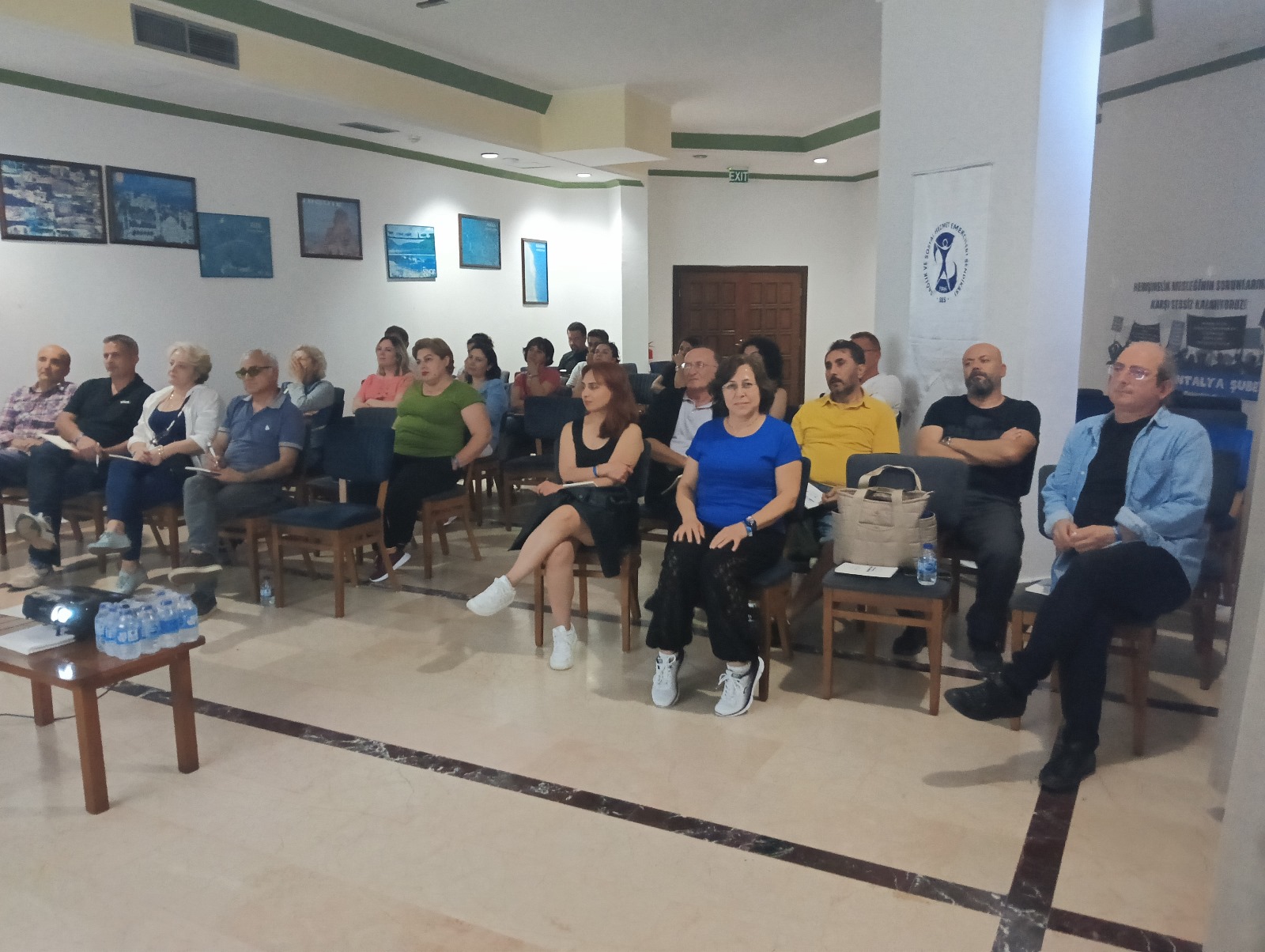 Sendikal mücadele başta olmak üzere hayatını kaybden sağlık ve sosyal hizmet emekçileri için yapılan saygı duruşuyla başlayan eğitimimiz, Şube Eş Başkanımız Şükran İçöz'ün açılış konuşması ve ardından yeni seçilen iş yeri temsilcilerimizin kendilerini tanıtmalarıyla devam etti.