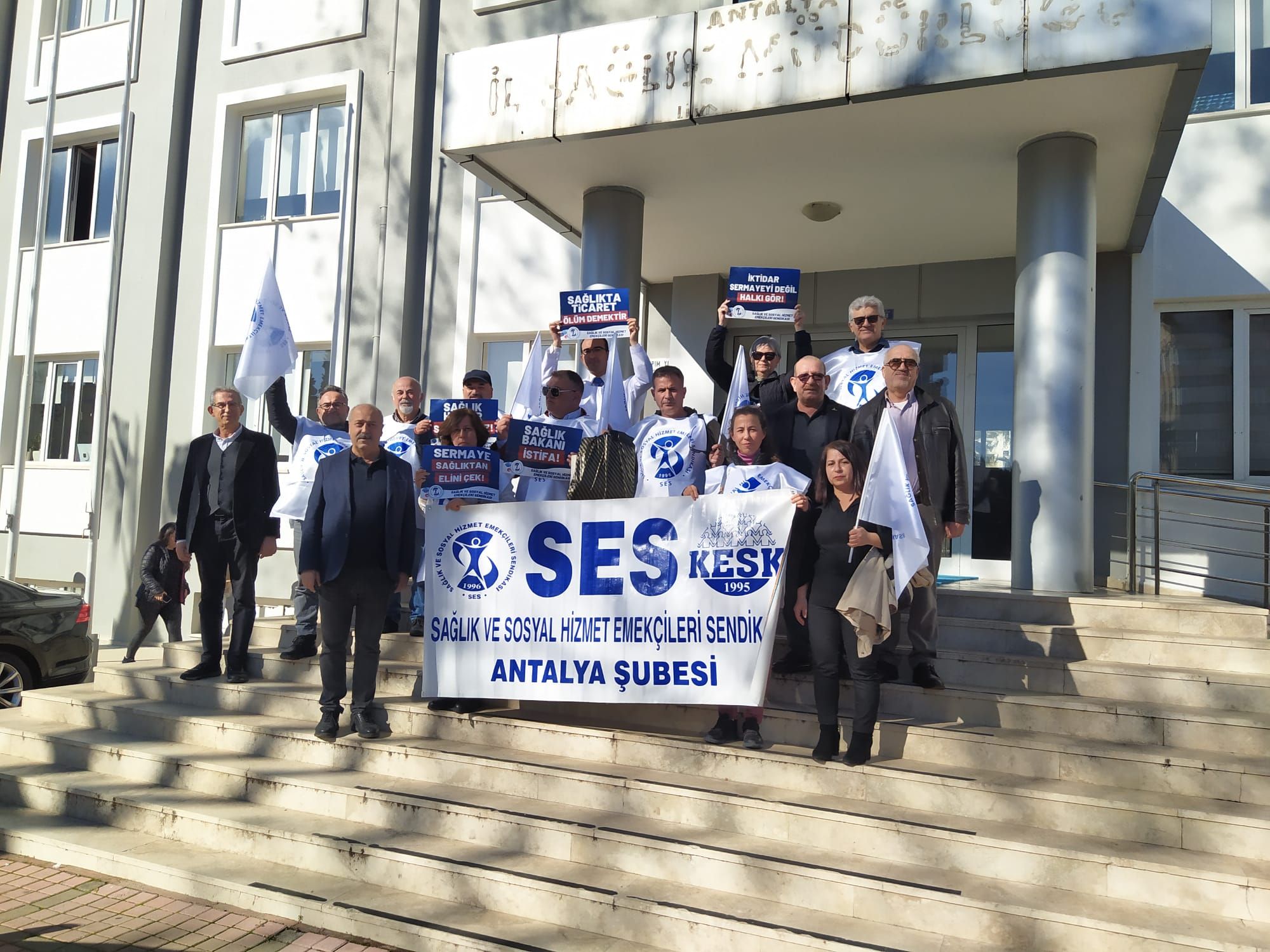 Basın açıklamasında konuşan Sağlık ve Sosyal Hizmet Emekçileri Sendikası (SES) Antalya Şubesi Eş Başkanı Şükran İçöz şunları ifade etti;