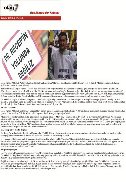Yönetim Kurulu üyemiz Dr.Metehan Akbulut, “Herkese Eşit Parasız Sağlık Hakkı” için