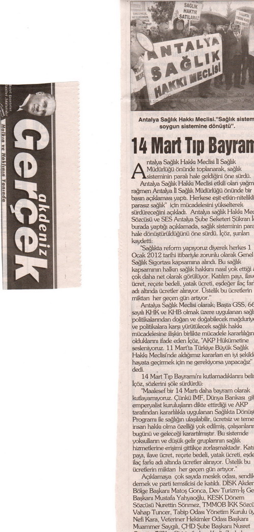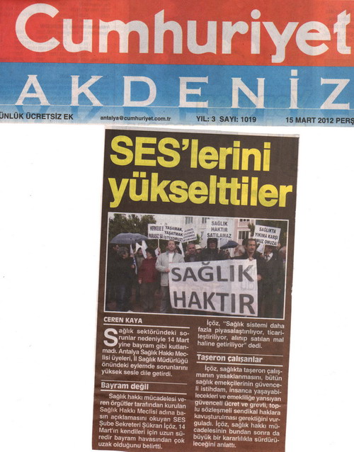 Şube Sekreterimiz Şükran İçöz’ün Antalya Sağlık Hakkı Meclisi adına İl Sağlık Müdürlüğü önünde yaptığı açıklama