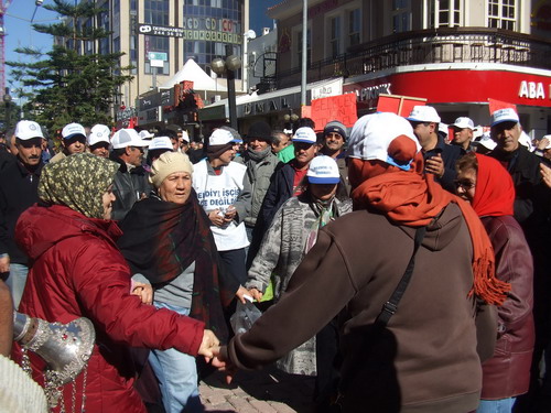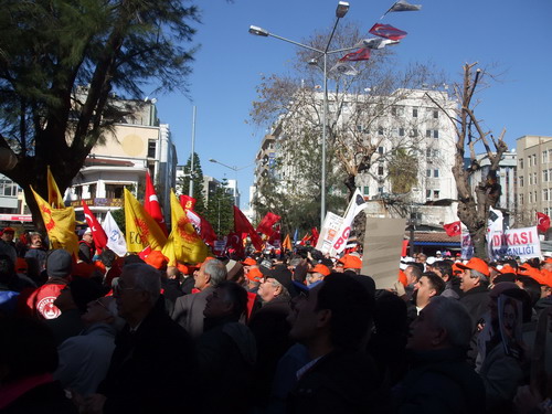 Tekel işçilerine destek olmak amacıyla, Türk-İş, DİSK, ve KESK' üyeleri Antalya'da iş bıraktı.