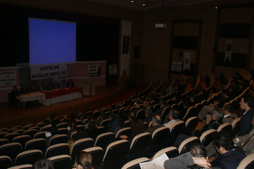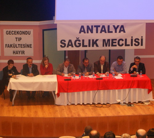 Çok sayıda sağlık ve sosyal hizmet emekçisi ile tıp öğrencisinin katıldığı toplantıda açılış konuşmasını yapan Antalya Tabip Odası Genel Sekreteri Dr.Yavuz İpekli Sağlık Meclisi’nin kuruluş sürecini ve gerekçelerini anlattı. Hazırlanan basın açıklamasının Diş Hekimleri Oda Başkanı Dt.Caner Güleç tarafından okunmasının ardından Antalya Sağlık Meclisi bileşenleri; Sağlık ve Sosyal Hizmet Emekçileri Sendikası, Devrimci Sağlık-İş, Akdeniz Üniversitesi Öğretim Üyeleri Girişimi, Asistan Hekimler, Veteriner Hekimler Odası, Diş Hekimleri Odası, Tıp Öğrencileri Türk Hemşireler Derneği, Hasta Hakları Derneği ve Antalya Tabip Odası temsilcileri birer konuşma yaptılar.