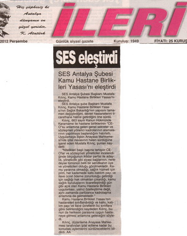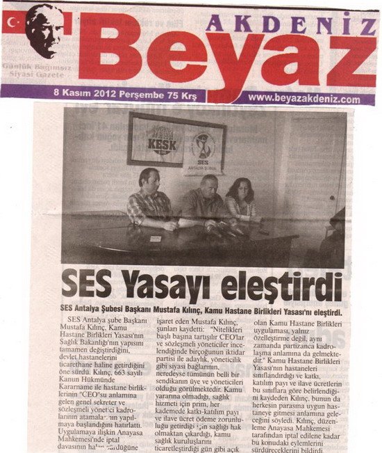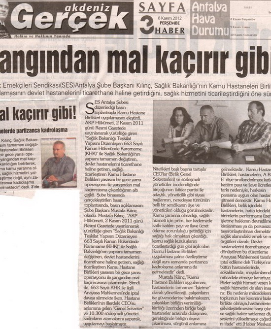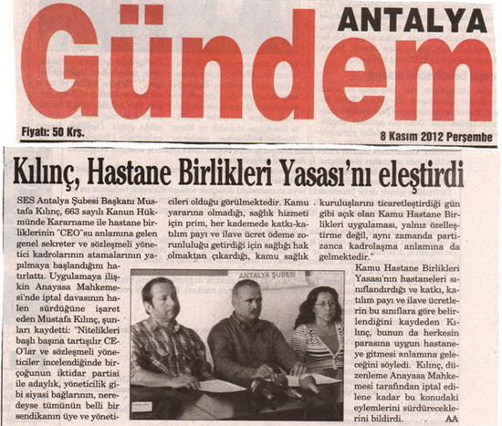 Kamu Hastane Birlikleri uygulaması ile ilgili yaptığımız açıklama basında yer aldı.