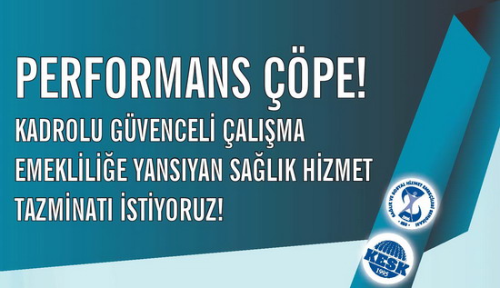 1980’lerden itibaren başlayan, 2002 yılından itibaren hızlandırılan, en sonunda çıkarılan 663 Sayılı “Sağlık Bakanlığı Teşkilat Yapısını Düzenleyen Kanun Hükmünde Kararname” ile de tamamlanan Sağlıkta Dönüşüm Programı Sağlığı HAK olmaktan çıkarırken, çalışanların ücretlendirme sisteminde de önemli değişikliklere neden olan “Performans” bu uygulamalardan biridir. Performans uygulaması, ücret güvencesini ortadan kaldırmakta, alınan ücretler emekliliğe yansımamakta, gelecek güvencesini de olumsuz yönde etkilemektedir.