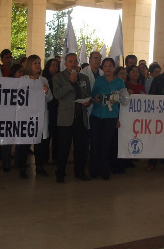 Sık sık “Sağlıkta Dönüşüm Ölüm Demektir” sloganının atıldığı eylemde Mustafa Kılınç “Sağlıkta Dönüşüm” ün can almaya devam ettiğini belirterek, Son olarak İstanbul (Samatya) Eğitim ve Araştırma Hastanesi acil tıp asistanı Dr. Melike Erdem’in 30 Kasım 2012 günü, Sağlık Bakanlığı’nın Alo 184 SABİM hattına yapılan bir şikayetle ilgili savunmasını verdikten sonra çalıştığı hastanenin altıncı katından atlayarak yaşamına son vermiştir, şeklinde konuştu.