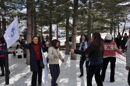 Çocukların daha çok kartopu oynamayı ve kardan adam yapmayı tercih ettikleri etkinlikte sağlık ve sosyal hizmet emekçileri karların arasında şarkılar, türküler söyleyip halaylar çektiler.