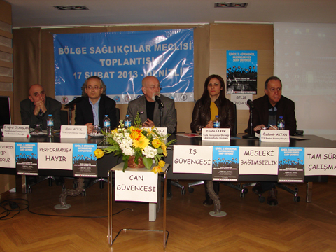 Aydın, Burdur, Uşak, Isparta ve Antalya'dan gelen katılımcıların olduğu toplantı TTB Merkez Konseyi Başkanı Prof.Dr.Özdemir Aktan'ın sağlıkçılar meclisi hakkında bilgi vermesiyle başladı.