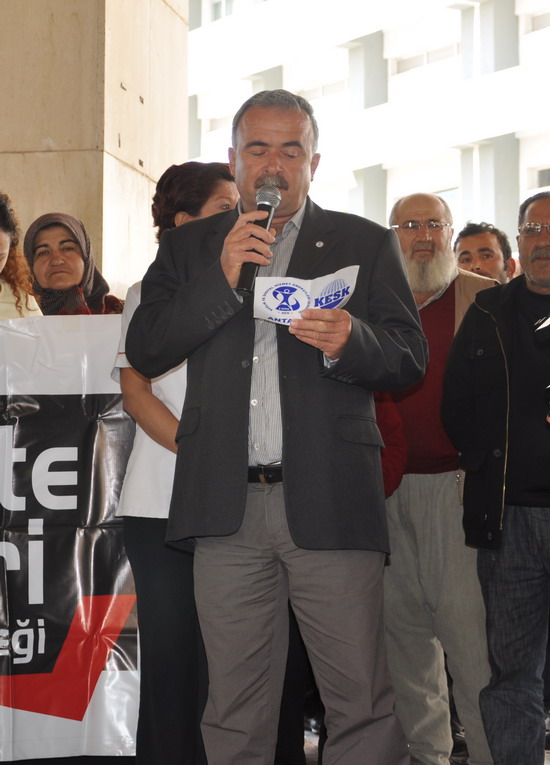 İlker Belekle dayanışma eylemi destek veren SES Antalya Şubesi adına konuşan Şube başkanı Mustafa Kılınç :