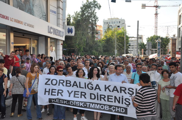 Antalya Şubesi “Zorbalığa Karşı Her Yer Direniş” ana teması ile bir yürüyüş düzenleyerek AKP ve polis terörünü kınadı. Kapalı Yol Halk Bankası önünde toplanarak Cumhuriyet Meydanına kadar yürüyen yaklaşık 1200 kişi yol boyunca “Faşizme Karşı Omuz Omuza””Her Yer Taksim Her Yer Direniş” Kurtuluş Yok Tek Başına Ya Hep Beraber Ya Hiç Birimiz” “Gün Gelecek Devran Dönecek AKP Halka Hesap Verecek” sloganlarını haykırdı. Basın açıklamasının okunmasının ardından yürüyüşü düzenleyen örgüt temsilcileri birer konuşma yaptı.