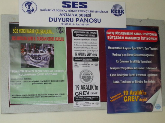 SES Antalya Şubesi 19 Aralık 2013 GREV hazırlıkları kapsamında işyerlerinde bildiri dağıttı