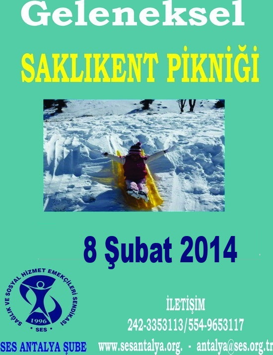 Şubemiz tarafından 08 Şubat 2014 Cumartesi günü Saklıkent Kayak Merkezinde piknik düzenlenecektir.