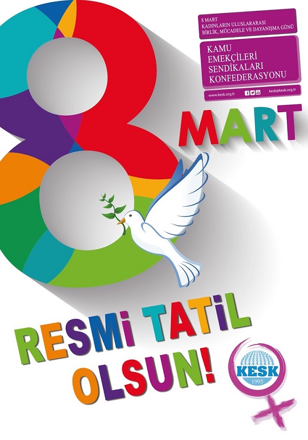 8 Mart Çarşamba günü saat 12:30'da "8 Mart Tatil İlan Edilsin" talebiyle üretimden gelen gücümüzü kullanarak alanlara çıkıyoruz. Attalos heykeli önünde basın açıklaması yapılacak.