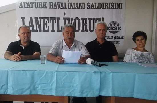 KESK Antalya Şubeler Platformu Dönem Sözcüsü Mustafa AYAR yaptığı basın toplantısıyla Atatürk Havalimanı'nda