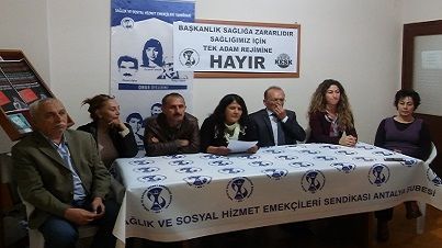Başkanlık diye bize dayatılan sistem, kamu sağlık hizmetlerinin piyasalaştırılması, katkı katılım paylarının ve ilaç ücretlerinin artması, halkın sağlık hizmetine ulaşımındaki engellerin daha da büyümesi demektir.