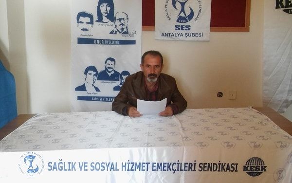 Sağlık Sosyal Hizmet Emekçileri Sendikası (SES) Antalya Şube Sekreteri F. Yaşar Doğan şube binasında yaptığı basın toplantısında Sağlık Bakanlığı bütçesi hakkında açıklamalarda bulundu.