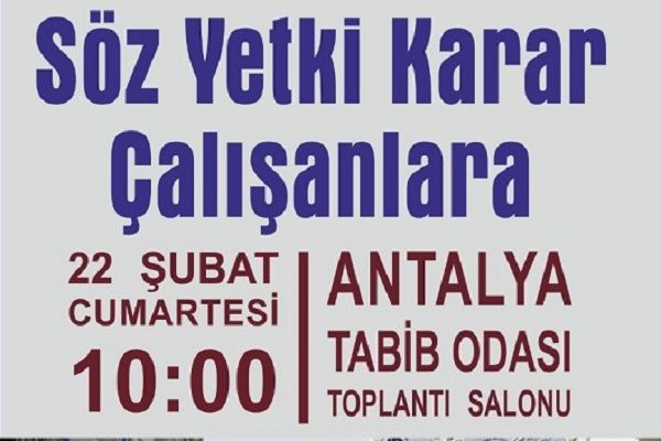 çoğunluk aranmaksızın 22/02/2020 tarihinde Antalya Tabip Odası toplantı salonunda yapılacaktır