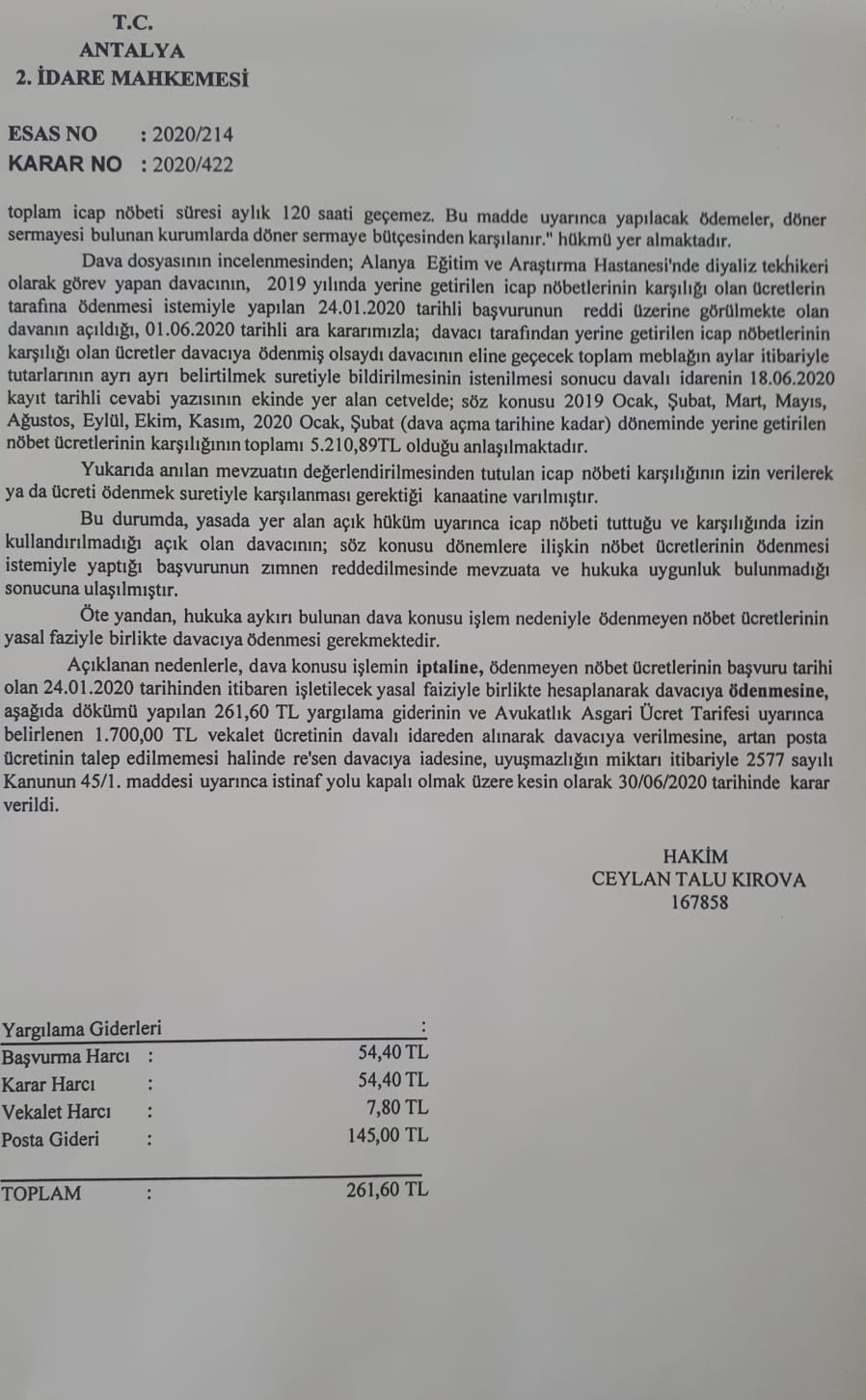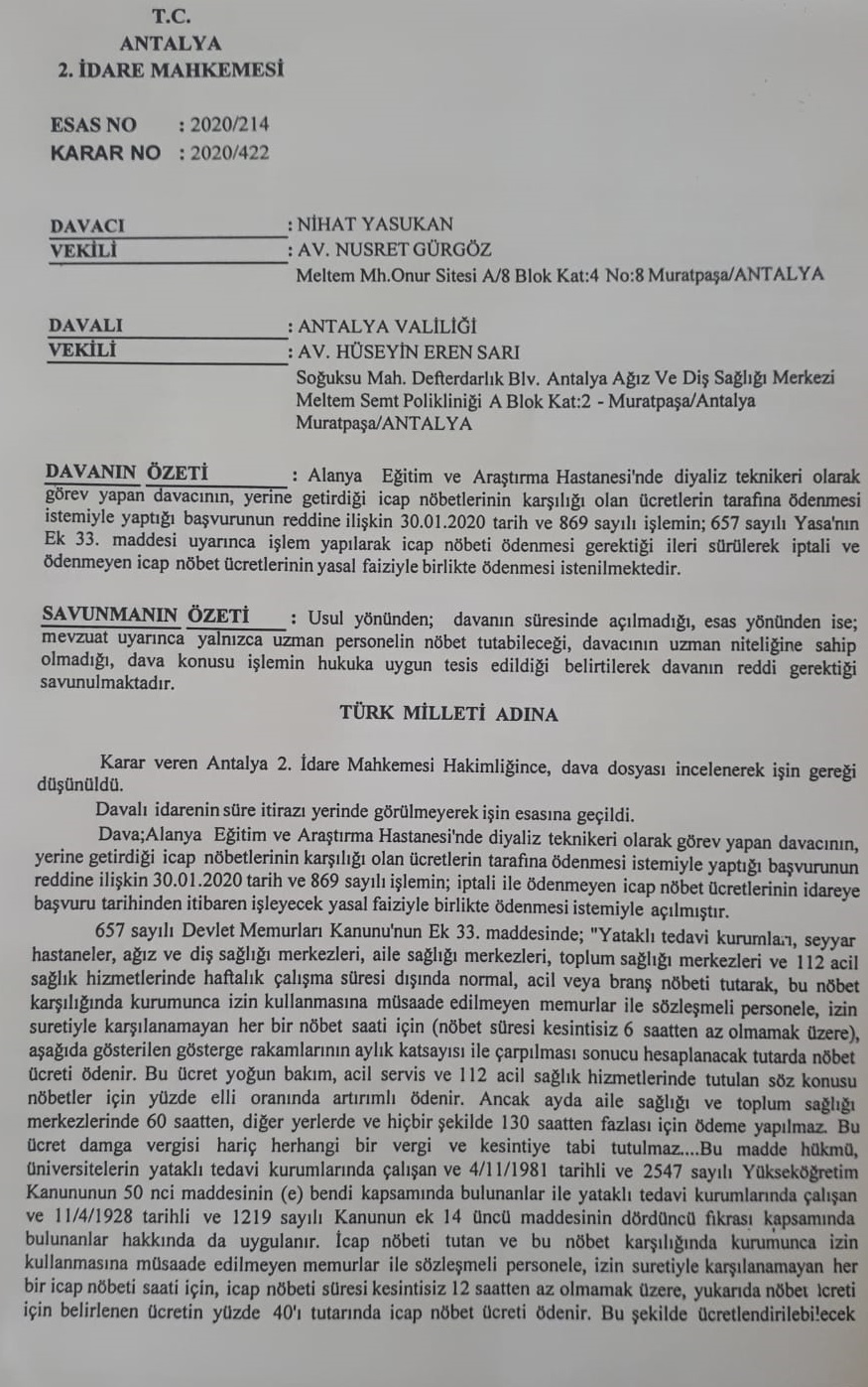 Ödenmeyen İcap Nöbetleri ile ilgili açtığımız dava sendikamı