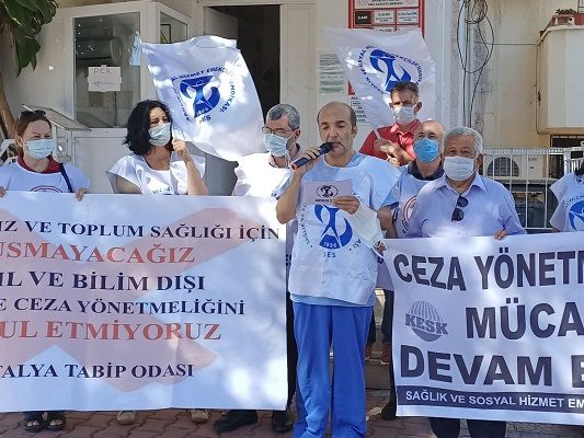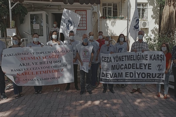 Sağlık ve Sosyal Hizmet Emekçileri Sendikası Antalya Şubesi ve Antalya Tabip Odası ceza yönetmeliği olarak nitelendirdikleri