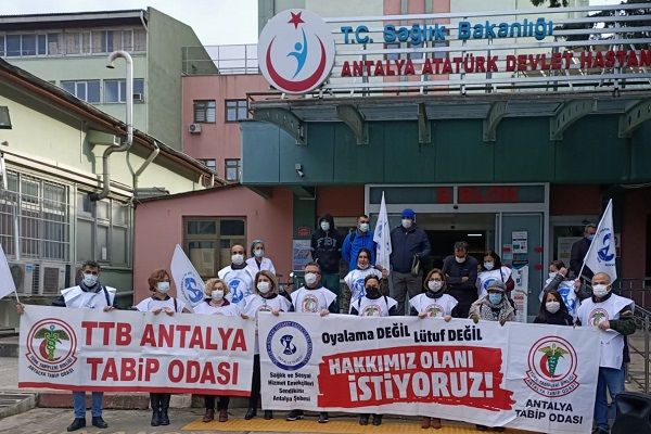 Antalya Tabip Odası ve Sağlık ve Sosyal Hizmet Emekçileri Sendikası Antalya Şubesi düzenledikleri basın açıklamasıyla,