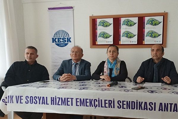 Sağlık ve Sosyal Hizmet Emekçileri Sendikası Antalya Şubesi Eş Başkanı Şükran İçöz şube binasında düzenlediği