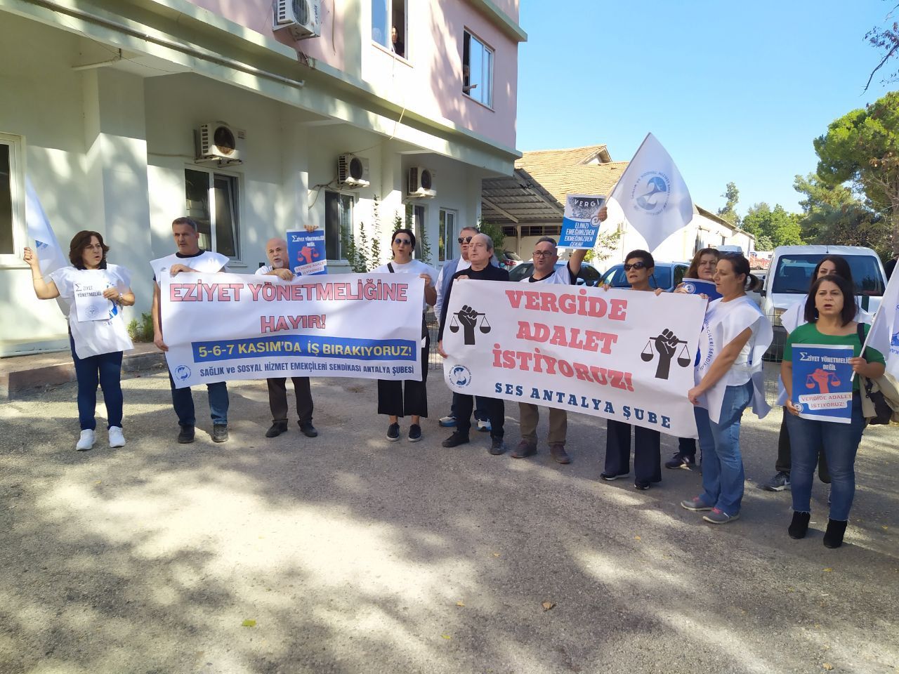 Konuya dair basın açıklamasını SES Antalya Şube Eş Başkanı Dr. Kaan Taşer yaptı. Dr. Kaan Taşer; “Bugün 6 Kasım 2024 Çarşamba. Vergide adalet talebimizin 35.haftasında, Eziyet yönetmeliğine karşı başlattığımız G(ö)REV eylemimizin ikinci günündeyiz.